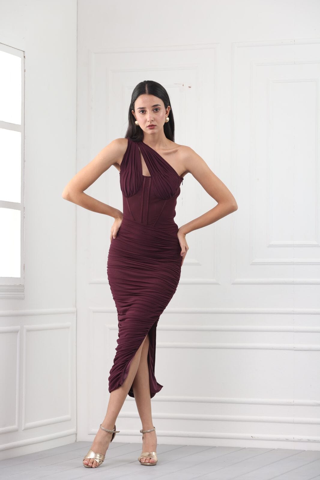 Escape it all - wine asymmetric cutout midi dress