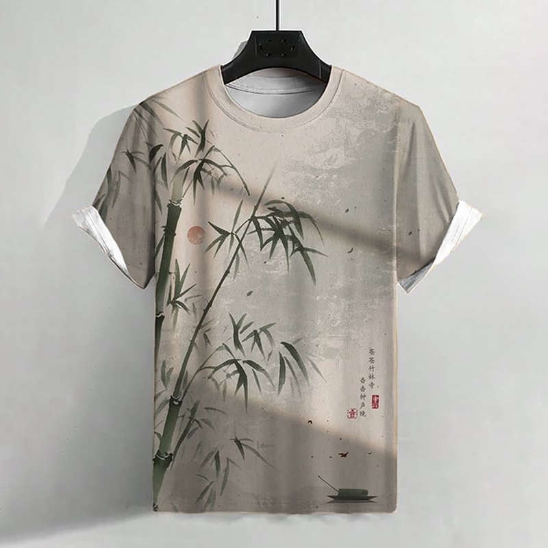Men's Bamboo Chinese Calligraphy Art Painting Print T-Shirt